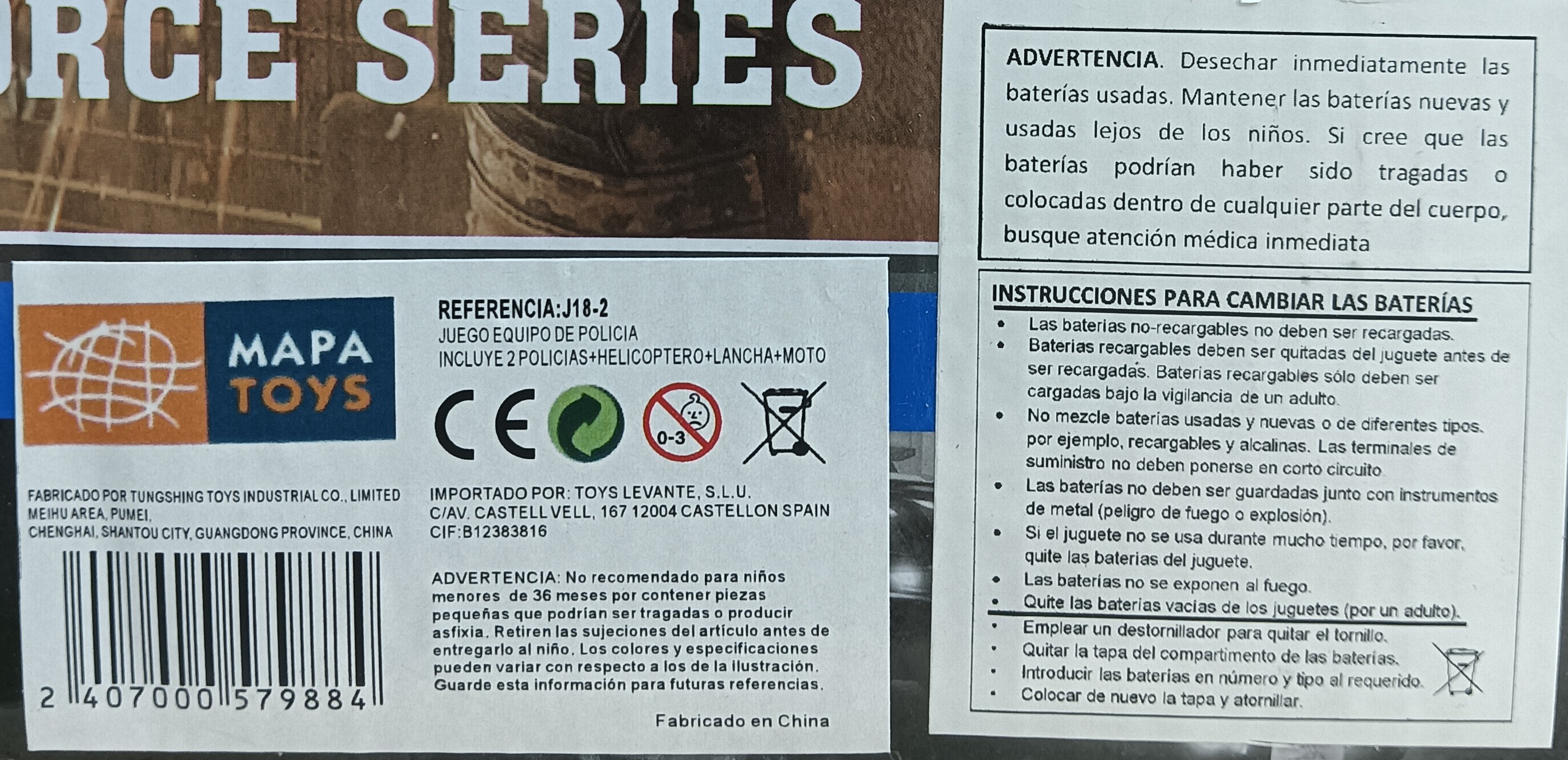 Moto Guardia Civil Con Figura Luz y Sonido 17cmPrecio 16,99 €Camión 2 vehículos Construcción Modren Design SdosPrecio 16,95 €Camión Militar Luz y Sonidos 1:16 26 cm FricciónPrecio 12,95 €Furgoneta Guardia Civil Citroen con Radar 15cmPrecio 16,99 €Avión de Pasajeros Luz y Sonido 1:160 AviationPrecio 13,95 €Camión Policia 4 mini Vehículos Police Peace PlanPrecio base 39,95 € Precio 35,95 €Camión Grúa Transporta Leña 1:10 Luz y SonidosPrecio 19,95 €Coche Muelles Suspensión Crazy Truck 2 SurtidosPrecio 4,95 €Camión Trailer Rescate + 2 vehículos 1:12 ToystarPrecio 21,95 €Coche Policia Todoterreno 1:16 City ServicePrecio 14,96 €Ambulancia Luz y Sonidos 1:16 Emergency CityPrecio 11,95 €Camión Medical Responder 30cm Luz City HeroesPrecio 24,99 €Camión Trailer Bomberos + 2 vehículos 1:12 ToystarPrecio 21,95 €Autobús 2 Pisos Rojo 1:14 Luz-Sonidos SightseeingPrecio 14,96 €