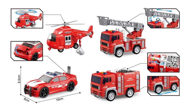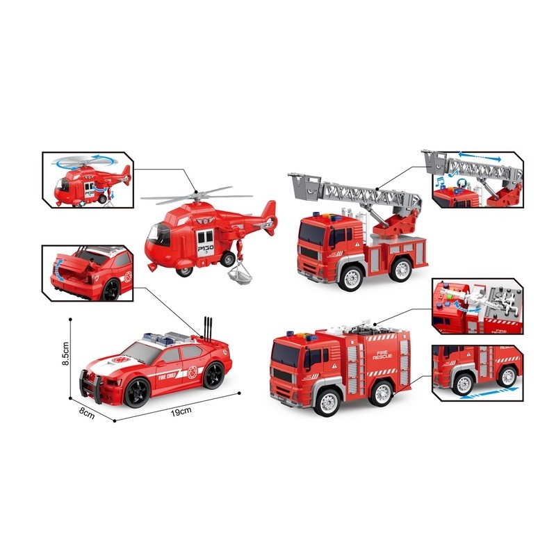 Set 4 Vehículos Bomberos 1:20 Luz y Sonido Rescue