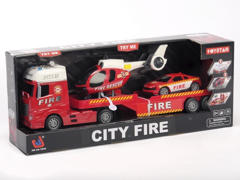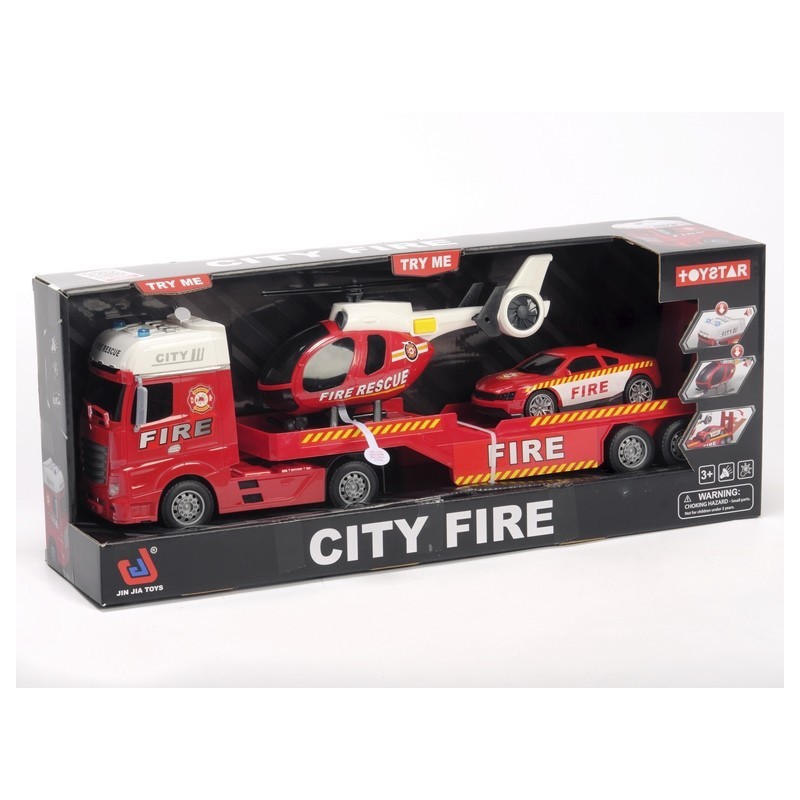 Camión Trailer Bomberos + 2 vehículos 1:12 Toystar