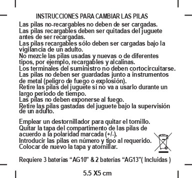 Funciona con 3 pilas AG13, incluidas para comenzar a jugar de inmediato.