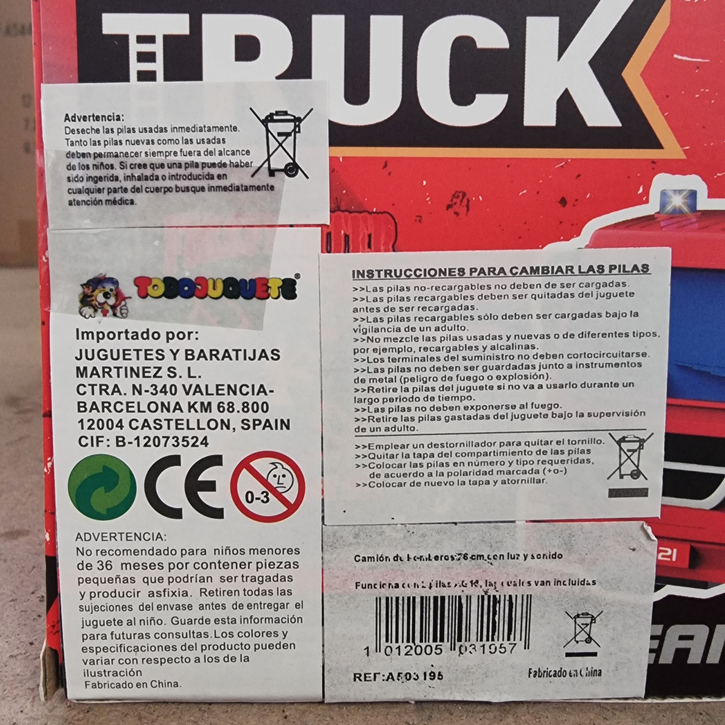 Con una longitud de aproximadamente 26 cm, este camión cuenta con ruedas a fricción, luces y sonidos realistas, brindando una experiencia de juego inmersiva.