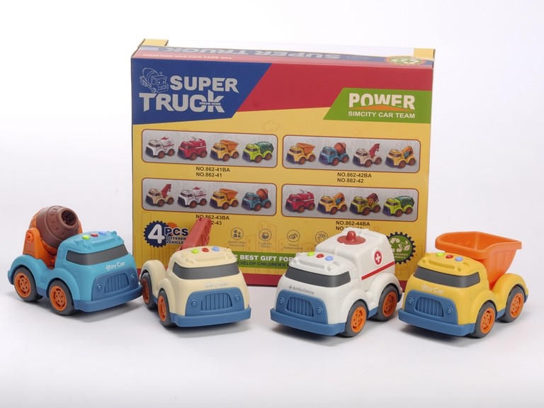 Este set incluye cuatro vehículos de rueda libre: tres vehículos de construcción y una ambulancia, todos con efectos de sonido que hacen el juego aún más realista y emocionante.
