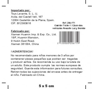 Camión Grúa Transporta Leña 1:10 Luz y SonidosPrecio 19,95 €Camión Limpieza Calles Luz y Sonidos 1:16 SweeperPrecio 12,95 €Autobús 2 Pisos Rojo 1:14 Luz-Sonidos SightseeingPrecio 14,96 €Camión Construcción 4 mini Vehículos EngineeringPrecio 39,95 €Camión Policia 4 mini Vehículos Police Peace PlanPrecio 39,95 €Coche Todoterreno Policía Patrol Inertia 2 ColoresPrecio 16,95 €Set Policía Helicóptero + Coche 1:14 Luz y SonidoPrecio 11,95 €Playset 4 Vehiculos Emergencias Luz y Sonido 1:20Precio base 29,95 € Precio 26,95 €Vehículo 6 Ruedas Mad Runner Fricción 4 col surtidPrecio 16,95 €Set 4 Vehiculos Construción Sonidos Super TruckPrecio base 29,95 € Precio 24,95 €Camión Militar Luz y Sonidos 1:16 26 cm FricciónPrecio 12,95 €Camión Trailer Portacoches Luz Sonido 1:16 BuilderPrecio 17,94 €Camión Bomberos 26cm Luz y sonido Fire Engine SdosPrecio 11,95 €Furgoneta Guardia Civil Citroen con Radar 15cmPrecio 16,99 €