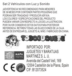 Set Espacial Nave y Astronautas Luz Sonido PioneerPrecio 27,95 €Camión Trailer Bomberos + 2 vehículos 1:12 ToystarPrecio 21,95 €Camión Portavehículos 6 vehículos Catapult TruckPrecio 27,95 €Camión Policia 4 mini Vehículos Police Peace PlanPrecio base 43,95 € Precio 39,95 €Camión Basura Purifier 29 cm 1:16 Luz y SonidoPrecio 12,95 €Set Policía Helicóptero + Coche 1:14 Luz y SonidoPrecio 11,95 €Camión Medical Responder 30cm Luz City HeroesPrecio 24,99 €Coche Radio Control Guardia Civil SurtidoPrecio 9,95 €Playset 4 Vehiculos Emergencias Luz y Sonido 1:20Precio base 29,95 € Precio 26,95 €Retro Excavadora Volvo con funciones 30cmPrecio 37,99 €Coche Fricción 1:16 Policía Luz y SonidoPrecio 11,95 €Camión Portavehículos Maletín con 6 Coches AzulPrecio base 29,95 € Precio 21,95 €Furgón Policia Luz y Sonidos 1:16 City RescuePrecio 11,95 €Coche Todoterreno Policía Patrol Inertia 2 ColoresPrecio 16,95 €