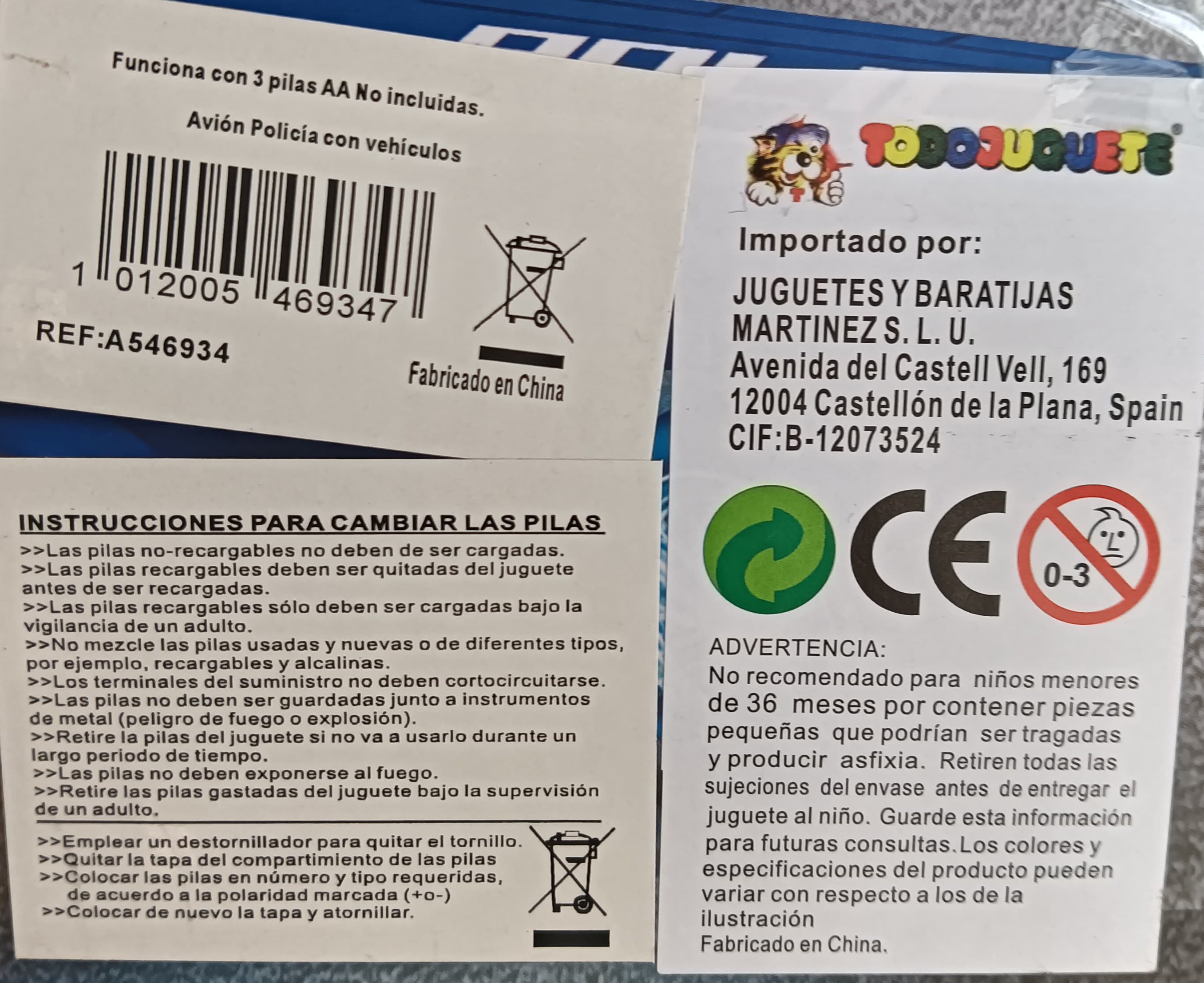 Funciona con 3 pilas AA no incluidas.
